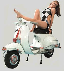 In den 50er Jahren prägte dieses Vehikel den Lebensstil seiner Zeit und wurde allenthalben salonfähig - selbst im gesellschaftlichen Bereich wurde der neue Roller zum begehrten und unverzichtbaren Objekt. Renommerite Film- und Showgrössen wie Garry Cooper, John Wayne, Audrey Hepburn, Raquel Welch, Ursula Andress, Geraldine Chaplin und viele andere schwangen sich auf ein "Wäschpi" und liessen sich bereitwillig für Werbezwecke ablichten.