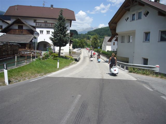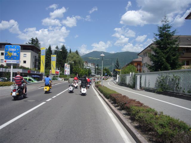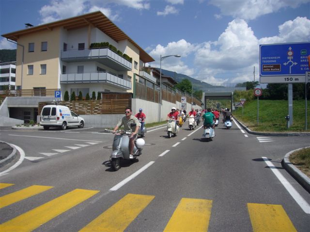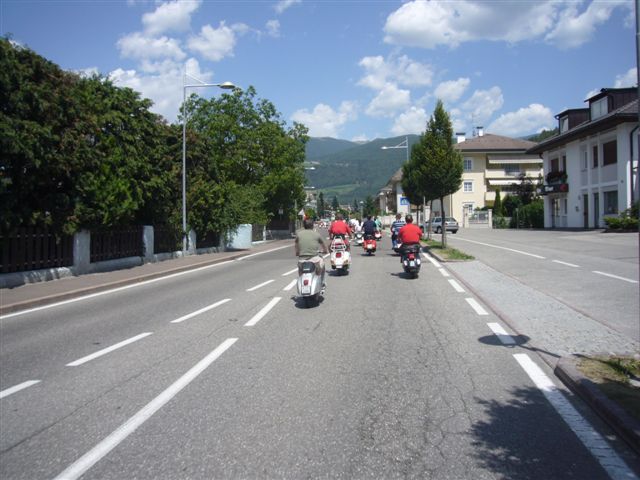 Hallo Mitglieder!! Schon wieder ist ein Vespatreffen erfolgreich über die Bühne gegangen!Mit dabei war der Vespa Club Raas! Zusammen fuhren wir Richtung Montal!Bei Ehrenburg kürzten wir etwas ab und ratterten durch den Wald bis nach Montal!Dort angekommen begann auch schon die Vespasegnung! Nach kurzem Auftanken bei brühender Hitze begann die Rundfahrt! Es fuhren ca. 60-70 Vespa durch die Altstadt von Bruneck zurück nach Montal!Einige Vespafreunde waren dabei! Wie der Vespa Club Feldthurns und Burgeis!